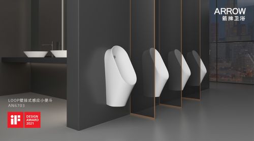 YURI壁挂式感应小便斗AN6701,凭借其圆润柔和外观轮廓,简洁优美造型设计,在2021年德国IF设计奖中荣获金奖,获得评委与众人的一致好评。