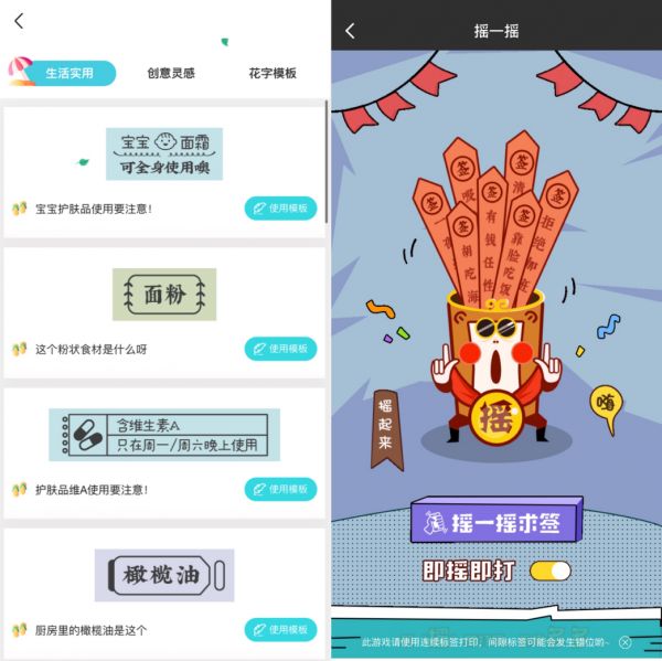 还有一个“神准摇签”。没错,就是那个摇签测运势,它摇完之后就能直接打出来,还挺有意思的。