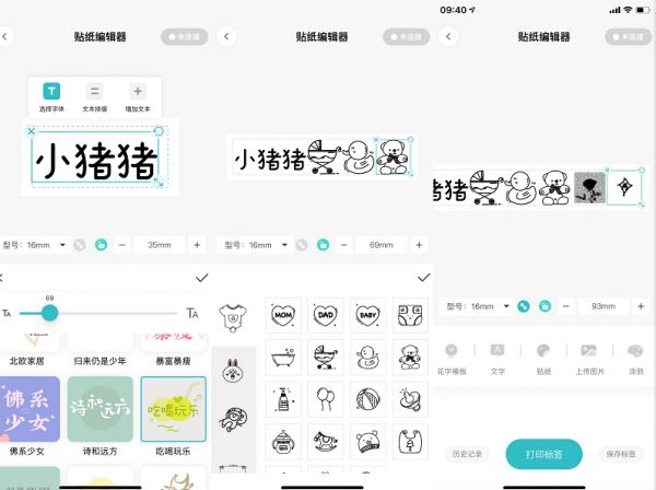 我买的这款小元气它能打印两种标签,连续的和间隙的。虽然有两个编辑器,但是它们的功能都是一样的,可以编辑字体、上传图片;里面还有好多贴纸(但是感觉在食材部分还可以添加一些~),自定义二维码;而且还能涂鸦!功能还是多的,但我还要继续探索探索……