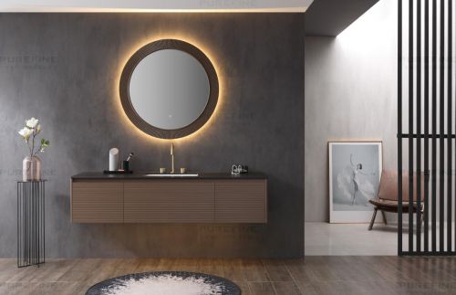 实木温暖舒适,与柜底3000k暖黄氛围灯互相呼应,传递出幸福的感受,让人更期待和享受每日的洗浴时光。