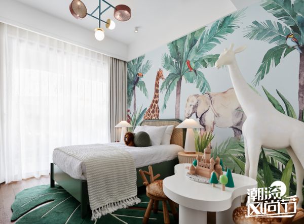 孩童对于自然的想象与好奇是无止境的,儿童房以“森林动物”为主题,通过深与浅的对比色调,拉伸层次的同时,也凸显生动与活泼之感,在有限的环境内迸发出无限可能。