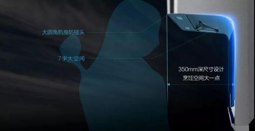 此外,额头采用350mm径深+R80黄金大圆角设计,曲美圆润,有效避免烹饪时碰头的风险。