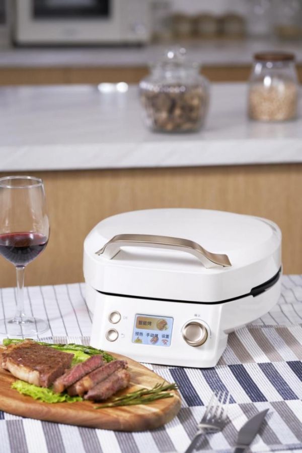 210℃的温度值,能煎烤出外焦里嫩的牛排;可悬浮结构,能适应不同厚度的牛排;上下烤盘双面煎烤,煎烤不用翻面,更能有效锁住水分,让牛排多汁不柴,品味真正的上等牛排;不粘涂层设计,让清洁简单无忧;2.4寸TFT彩屏搭配触控按键与旋钮,简单操作更轻松……