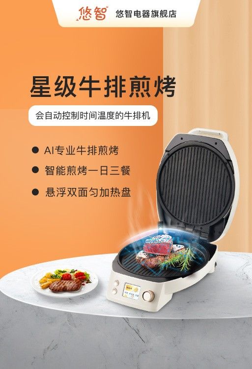 薇娅力荐的悠智-Aikee AI多功能牛排机果然名不虚传!简单的操作,丰富的智能化功能设计,充分地减少了烹饪的门槛,哪怕你是厨房小白,也能享受到烹饪的乐趣!