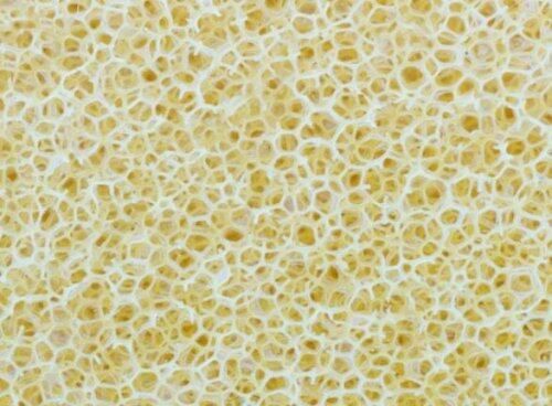 ▲迪花欧透水速干海绵与普通沙发高密度海绵对比图