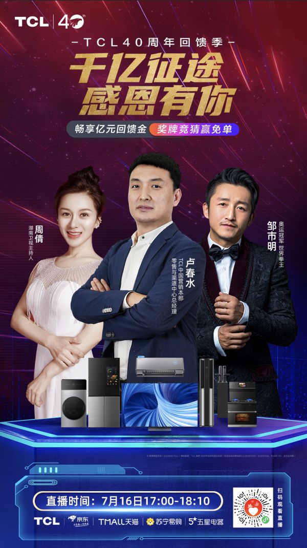 恰好从7月16日开始,到7月31日,TCL开启了“TCL 40周年回馈季”活动,还请到奥运冠军邹市明亲临7月16日直播间,活动期间参加奥运会中国队奖牌数竞猜活动,金银铜牌全部猜中就有机会赢得全额免单的超级福利,这样的机会真的要错过吗?