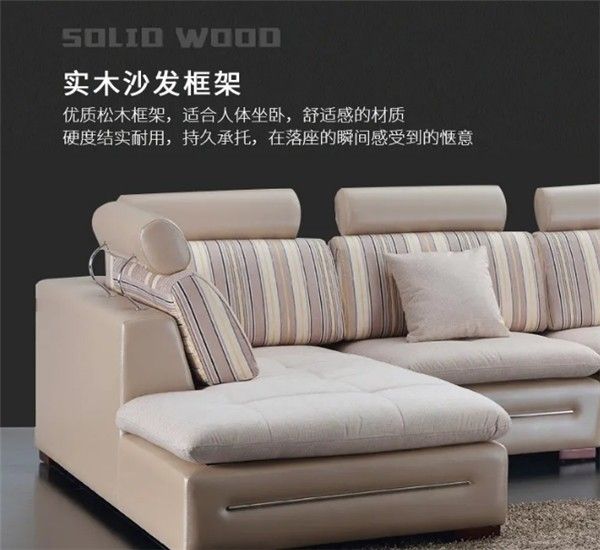 舒适的坐感像陷入云中,舒适柔软,幸福感爆棚。此款沙发全部采用实木框架,优质的松木框架坚实牢固的同时使用寿命更长,即使在沙发上打闹也安心。沙发整体设计更适合人体坐卧,沙发的坐垫和靠背采用棉麻布料,即使冬天或者夏季都是非常舒适,不会冬季冰冷、夏季闷热,完全解决这些烦恼,并且布艺和仿牛皮的结合让沙发整体看上去更加大气、奢华、内涵·····更加适用于多种家居风格中,仿牛皮的选材也更加结实耐用。