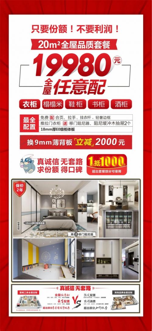 为感谢客户的大力支持,爱阁工房工厂店年中大促。“总部冲量,直享工厂出厂价,保价2年,再享总部特批1元抵1000元!”一键装修省钱福利,让你不再纠结哪家性价比才是第一。