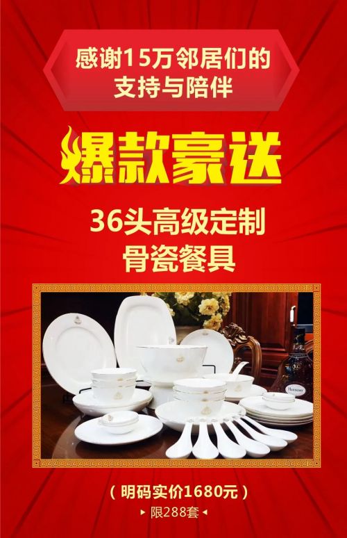 总部豪送36头高级定制骨瓷餐具(限288套)