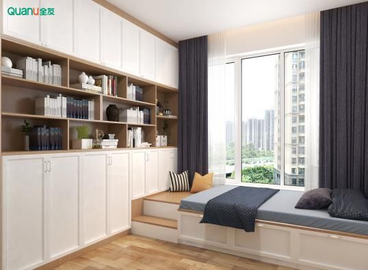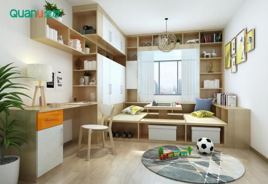 如今,很多家庭没有独立书房,对学习生活造成了诸多不便,所以,如果像要房间既能充当卧室,也能充当书房的话,不妨延伸榻榻米定制一体式书桌柜,在有效利用空间的同时,还能留出更多活动空间。