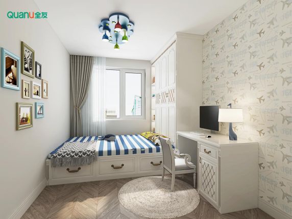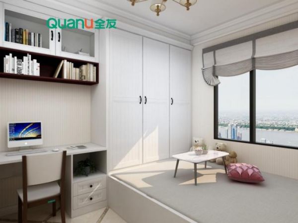 2.榻榻米床+衣柜+梳妆台,后期可改为青少年房,具有可变性;