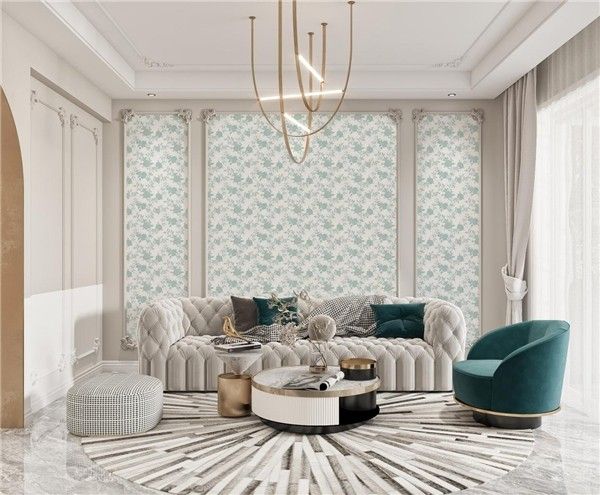 汇明A+墙布《浮雕绣》是经典的欧式宫廷墙布代表,以繁复的花纹来呈现华丽典雅的欧式宫廷风情,搭配同色系的欧式沙发,让空间充满奢华精美之感。