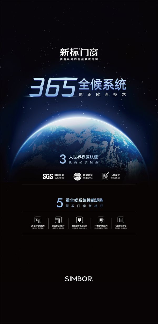 新标门窗365全候系统,以新标门窗为核心,结合新标铝木门、新标全屋定制产品,构建365天全地候,全时候,全人候保护系统,将全候系统作为打开定制家居背面的钥匙,完美呈现新标门窗在大家居场景下的全候系统定制,适应不同家庭的生活需求,开启高端私宅的全候系统定制。