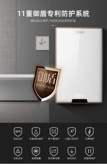 奥特朗专注即热式电热水器21年,是电热水器领域领导品牌,也是行业标准起草工作组组长、国家标准起草单位,累计获得专利超150项。长达21年的品牌沉淀,实力雄厚,大品牌品质有保证。选择浴室K歌神器——奥特朗F5B即热式电热水器,畅享品质热水生活,发掘更多洗澡乐趣吧!