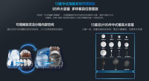 对于烹饪手法多变的中国家庭来说,洗碗并不单单意味着餐具清洗,锅具清洁也是一大任务。之前有水槽式洗碗机购买经验的人可能更能体会这句话的精髓:水槽洗碗机太小,洗碗的数量都十分有限,洗的速度又慢,即使一顿饭用了三口锅,也往往锅具都手洗完了,餐具还没洗完。“我手都沾水刷锅了,为什么不再多洗两个碗呢?”这样发自内心的疑问,让水槽洗碗机的实用性备受吐槽。