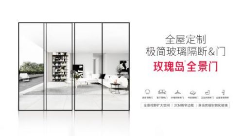 玫瑰岛品牌创立至今已二十余载,拥有多项国家专利,并通过ISO国际认证,业务覆盖全球数十个国家和地区。经过多年的产品专研和经验积累,2018年玫瑰岛创新推出高端全屋定制玻璃隔断&门,以大面积的汽车级安全钢化玻璃和极窄高端铝材边框作为主材,极窄考究,工艺突破;以毫米级别,刷新行业标准。极简理念打造玻璃隔断门的“全面屏”,从视觉上实现空间的延伸拓展,营造全景视野。玫瑰岛全景门曾荣获中国家居“创新设计产品奖”,致力于引领全屋定制玻璃隔断门的新潮流。