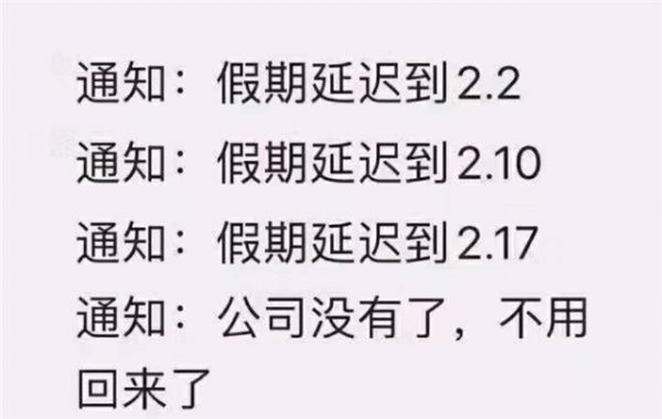 2020年刚刚开始的时候,因为疫情的原因不能够准时复工复产,所以网上流传着"公司没了,不用回来了"段子。