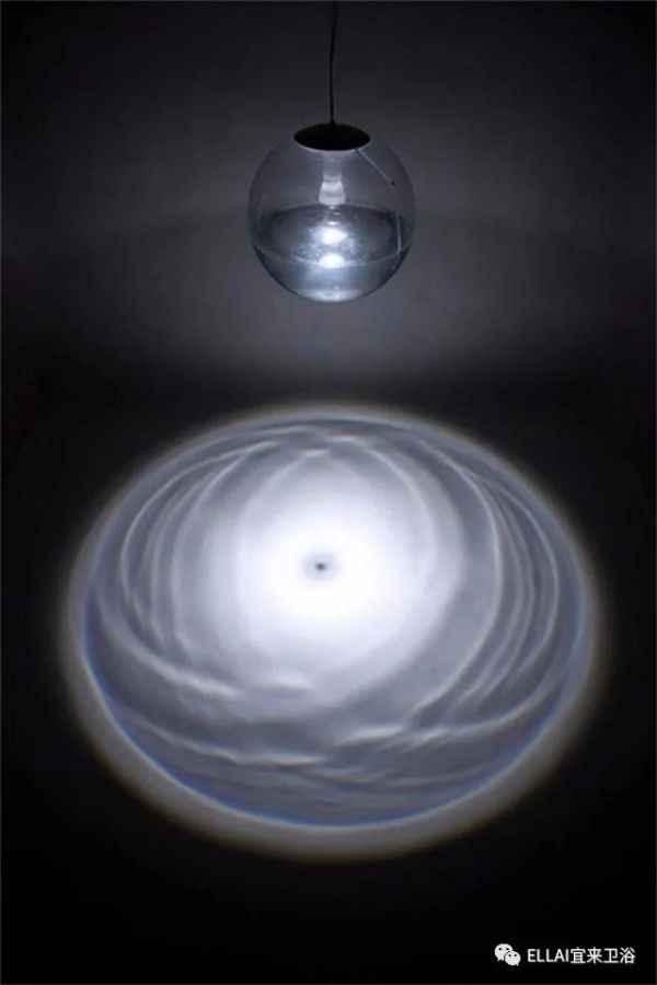 有趣的下雨吊灯Rain lamp,外部是一个圆形水盆灯罩,和不断滴水的光源基座,微型水泵持续循环水源。因此,每一滴水掉落都会产生涟漪。