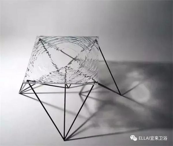 透明的桌子,y Fredrik Skåtar,玻璃桌面是涟漪形状的花纹,光影下仿佛在游动一样。
