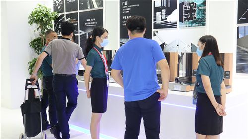 【李春才】今年展会,我们整体以轻奢现代的风格,结合绿色主流色彩及科技元素,推出5款新品。颜值最高的是橙色推拉门,采用双排轮轨道,解决了传统的单轨道的受力问题,推拉顺畅平稳,而且轨道可预埋与地板平齐,展现更开阔的视觉空间。其采用整面墙的LED屏幕,以航空,自然,流水,星空的3D立体视频作为背景,结合新品窗型结构,中间可视面达到4厘米的极窄边框,使户外环境一览无遗,让窗户与自然融合一体。同时,集合了指纹,密码,遥控等科技元素,展现了畅享科技未来的完美性能,让智造融入生活。