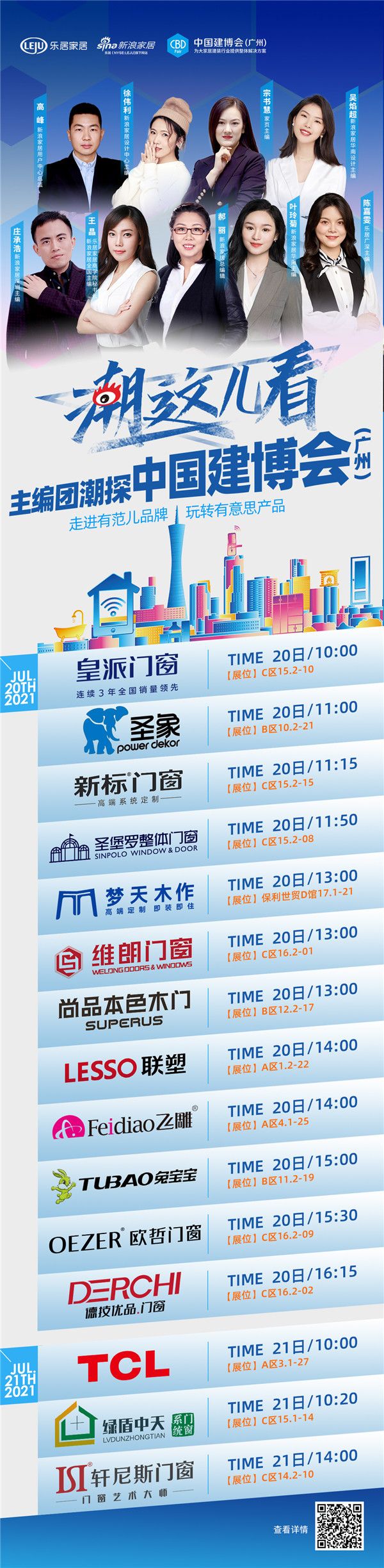 2021中国建博会(广州)展会期间,由新浪家居发起的“潮这儿看·主编逛展”活动,通过资深媒体主编联合设计大咖,对皇派门窗、圣象、新标门窗、圣堡罗整体门窗、梦天木作、维朗门窗、尚品本色木门、LESSO领尚、FeiDiao飞雕、TUBAO兔宝宝、欧哲门窗、德技优品门窗、TCL、绿盾中天系统门窗、轩尼斯门窗、索哲门窗等行业头部品牌组团打卡,借助新浪家居自身平台优势,主编逛展过程全程直播,直播间平均浏览量高达25.1万,平均点赞量达1.15万。