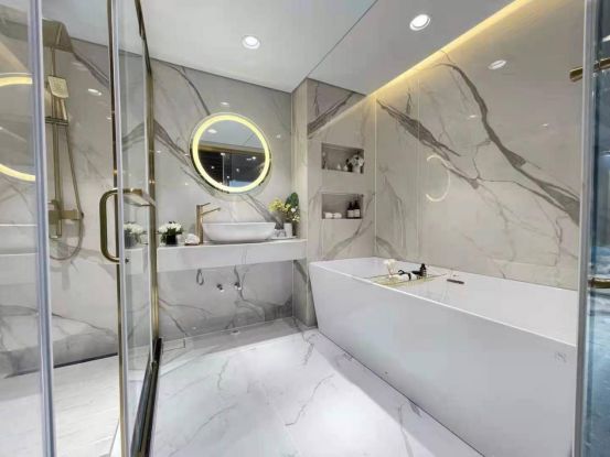 在本届展会中,领和整体卫浴将陶瓷大板与卫浴空间运用相结合,营造出一种高级、简约、时尚的现代卫浴生活空间,为现场观众带来一场别具一格的整体卫浴全新体验!
