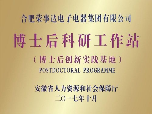近日,在安徽省人力资源和社会保障厅2020年度省级博士后科研工作站评估工作中,荣事达博士后科研工作站获评“优秀”等级。