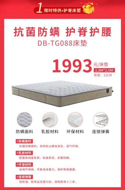 8月7日至8月22日,东宝床垫28周年庆盛大开启,限时推出了特供款“防螨护脊床垫”只卖1993元,这款床垫究竟怎么样呢,让我们来看一下吧。