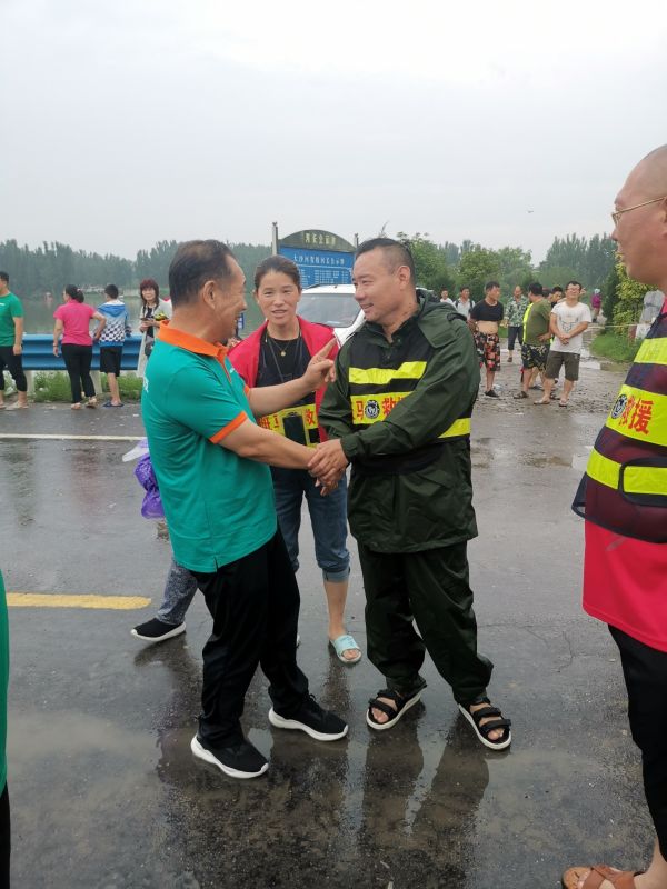 (完成人员转运工作后,全友工作人员与现场救援人员握手相谈)
