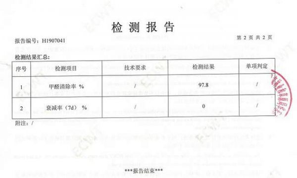 参与该标准制定的甲醛清除剂研发专业人士陈晓鹏向我们介绍:判断人造板甲醛清除剂的效果,有两个重要指标,一个是“甲醛清除率”,一个是“衰减率”。清除率是指使用产品后24小时甲醛降低的百分比,衰减率是指使用产品后7天的清除率比24小时的清除率降低的比率。清除率反映的是产品对甲醛是否具有清除能力,衰减率反映的是产品的清除甲醛的能力是否长期稳定。
