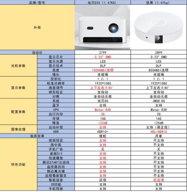 当贝D3X对比坚果G9