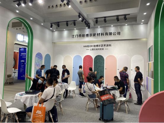 山不在高,有仙则名;水不在深,有龙则灵。在广州建博会,国潮品牌哈博尔艺术涂料的展位面积不算太大但位置上佳,展厅墙面上一排排展示样板艺术排列,几张接待圆桌上,是哈博尔团队正在与观展客户洽谈合作。