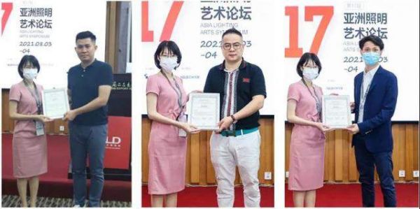 光与设计专场的主持人AALD会员、J Studio景照明主创设计师何伟杰先生担任,在专场互动环节之后,由AALD秘书长助理朱月容女士代表论坛主办单位向该专场主讲人王凯先生、徐清流先生及主持人何伟杰先生颁发纪念证书。