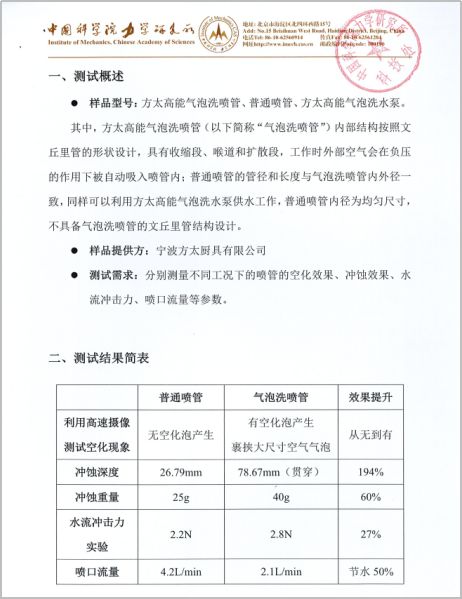 来自中科院力学研究所国家重点实验室对比了高能气泡洗和普通水洗的清洗效果。权威检测报告显示,通过测算水流速度、水流冲击力等数据,以及对空化泡的产生和溃灭进行高速拍摄和观测等等定性、定量实验,证明高能气泡洗技术下的相关水流数据比普通水流要更有利于提升清洗力和清洗效率。