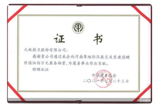 在今年的河南暴雨灾害中,九牧还捐赠出价值五百万元装备物资,为慈善事业做出贡献。