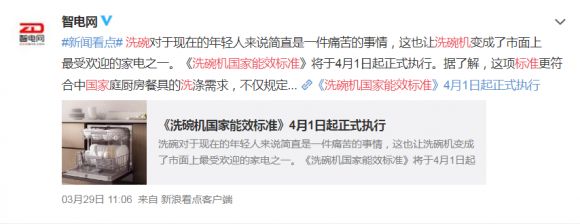 而近年来,随着《洗碗机国家能效标准》的制定和发布,中式洗碗机标准得到了“量身”制定。许多大牌厂家通过自主研发和创新,纷纷生产出了更适合中国家庭的洗碗机产品,让洗碗机在中国市场越来越被重视,成为年轻一代消费群体的厨电‘标配’产品。