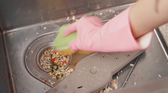 洗碗机清洗后,底部就会遗留大量餐余残渣,需要用户人工清洗。一旦不及时清洗,洗碗机内部就会发霉发臭,散发出一股难闻的异味。