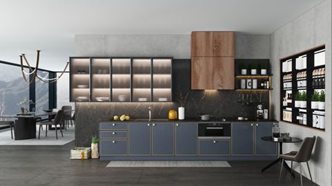 餐厨空间提供小套型和大套型两款,小套型为释放空间,选用内嵌背墙实现客户的收纳、展示需求,空间层次丰富、考究,通过极简的设计淬炼出一种直抵人心的家居美学。大套型分区清晰,增加操作空间,质感高雅,满足客户和其他家庭成员间的互动需求,处处是“积素凝华连曙辉”的诗情画意。