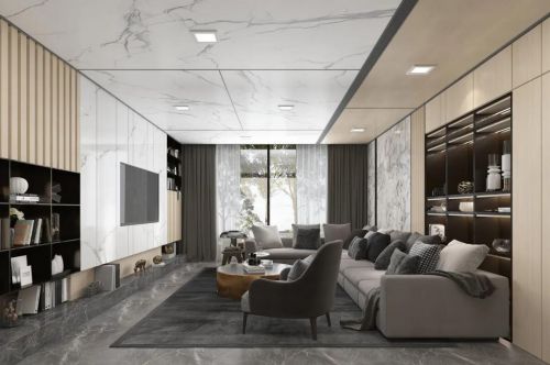 天然居全铝大板,打破传统固有的板面形态,将空间的延伸感发挥到极致。