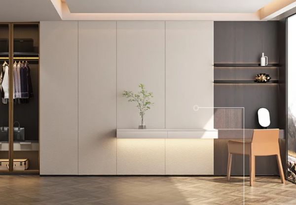 劳卡全屋定制米兰之光V2系列的创新推出,让每一层门板,每一个抽屉,每一个细节都和谐融合在一起,彼此互不相扰又相互配合,独特的材质语言和色彩融合,无时无刻不在告诉每一个使用者宁静无争的至高境界,让人们身处其间,不知不觉畅想都市美好乐章。