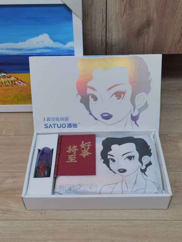 但是,今天要开箱的这款洒拖N1,我认为完全可以吊打市面上任何一个产品,因为它根本就不是同一类产品,可以说是降维打击所有收纳方式!这是一款为戴森吸尘器研发的真空压缩套装,它的独创性是在于为戴森吸尘器配一个转接头,直接用戴森吸尘器去给压缩袋抽真空,不到一句话的时间,就把一套冬天的羽绒被子“抽”扁了。