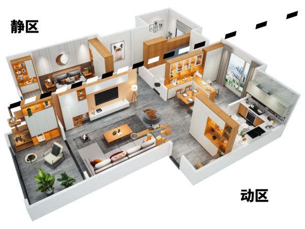 动区:指客厅、厨房、餐厅、阳台等家人经常活动的空间;