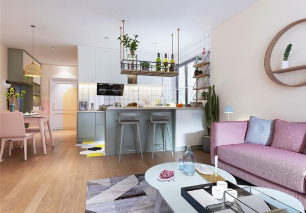 4.功能相近,动线要简短集中才最佳。将功能相近的区域相邻,比如餐厨可以连成一体,拿菜→洗菜→切菜→炒菜→装盘→就餐过程一气呵成,动线简短又省力。