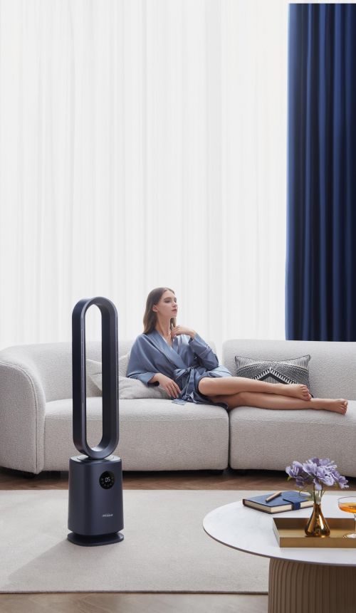 高级的无叶设计,更具科技感和轻奢质感,无论摆在家里的哪一处,都非常养眼,符合现代人的审美,牢牢锁住C位。另外,无叶风扇没有扇叶,这对于有小孩的家庭来说无疑更安全,因为不用担心小孩会不小心把手伸入到电扇的扇叶格栅中去。