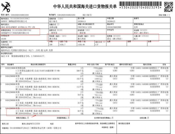 产品进口报关单: