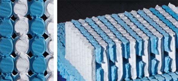 采用的这种排列设计工艺,可根据人体压力进行自我调节支撑,从而完美贴合脊椎曲线,同时中间的气道极大的增强了床垫的透气排湿性。