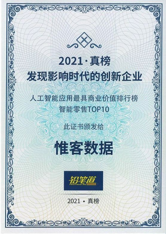 近期,铅笔道公开举办了一场人工智能的榜单评选工作,惟客数据凭借自身技术壁垒、市场认可、人才实力等综合优势成功登榜2021真榜人工智能应用最具商业价值排行榜 · 智能零售TOP10。