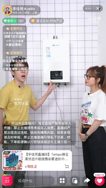 购物节发展至今,直播已是很多人了解新产品的渠道,新品上市不久,李佳琦就在直播间大力推荐了能率IOT语音智控热水器,很多年轻消费者从这个途径了解到了这款产品亲民的价格和智能化的功能。