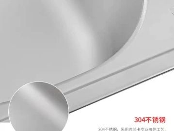 精密压纹款则采用德国蒂森克虏伯钢厂生产的精密细压纹不锈钢材料,同样的304食品级不锈钢。且采用弗兰卡专业拉伸工艺,使得水槽亮度更高,不易变色,抗氧化更耐高温。不留指纹,更好防污,不沾油污,抗腐蚀,易清洁,同时耐磨耐刮花。