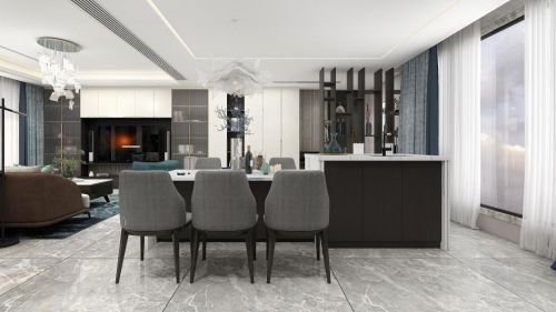 对比原狭窄的书房空间,开放式书房视线更开阔、心情更明朗,办公休闲的效率也会更高。书架设计可以摆放书籍或奖章,提升整个客餐厅格调的同时也是实用派。